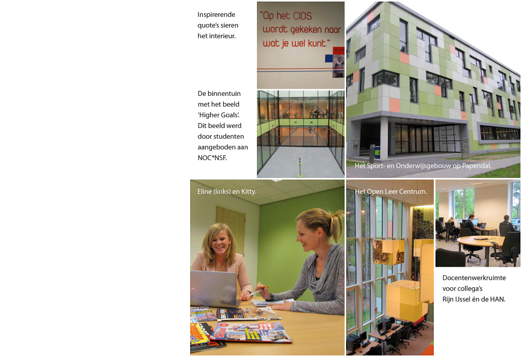 Nog niet alle mogelijkheden die het Sport- en Onderwijsgebouw met zich meebrengt, worden benut. Zo kan bijvoorbeeld de samenwerking mbo-hbo nog beter, maar dit kost tijd. “De passie is er, nu nog verder opbouwen,” aldus Eline. Ze vindt het zelf heerlijk werken op Papendal. Er is rust waardoor je goed kan focussen op de klas. Eline: “Papendal biedt zoveel meer!”